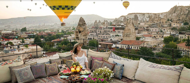 Henna Konak reflects the traditional architecture of Cappadocia, with cave as well as stone-built rooms and a warm, inviting atmosphere. Located in Göreme, it offers a more authentic and grounded experience while remaining close to the region’s main highlights.